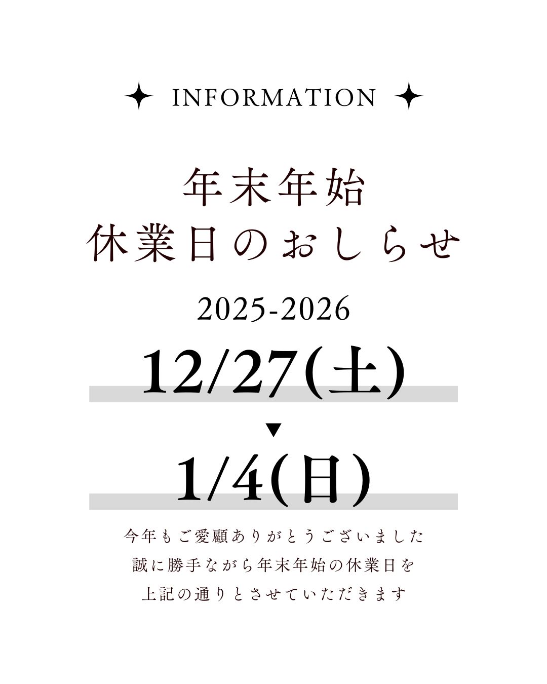 年末年始休業